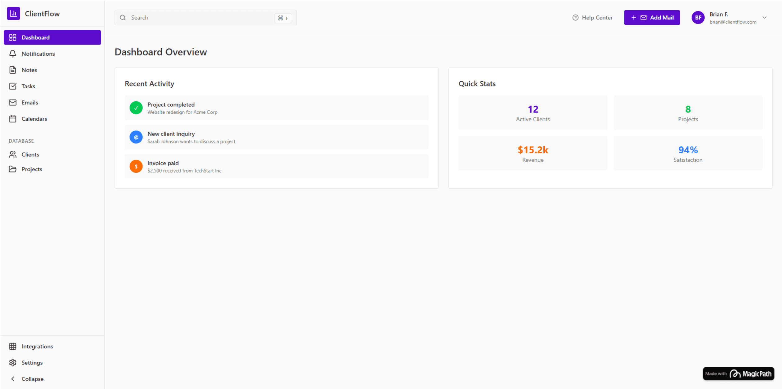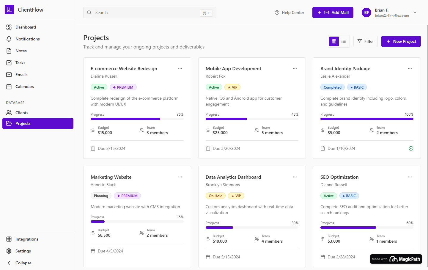 Import your client list or create profiles quickly. Client Flow organizes names, contacts, and projects in one place. No messy spreadsheets or scattered notes.